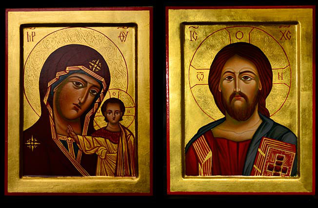 Komplet ikon ślubnych, Matka Boska z Dzieciątkiem, Chrystus Pantokrator, 2x 24x30 cm