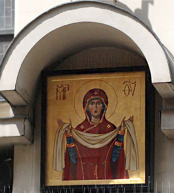 Opieka Matki Bożej, fasada cerkwi pw. Zaśnięcia NMP w Krakowie, 90x110 cm